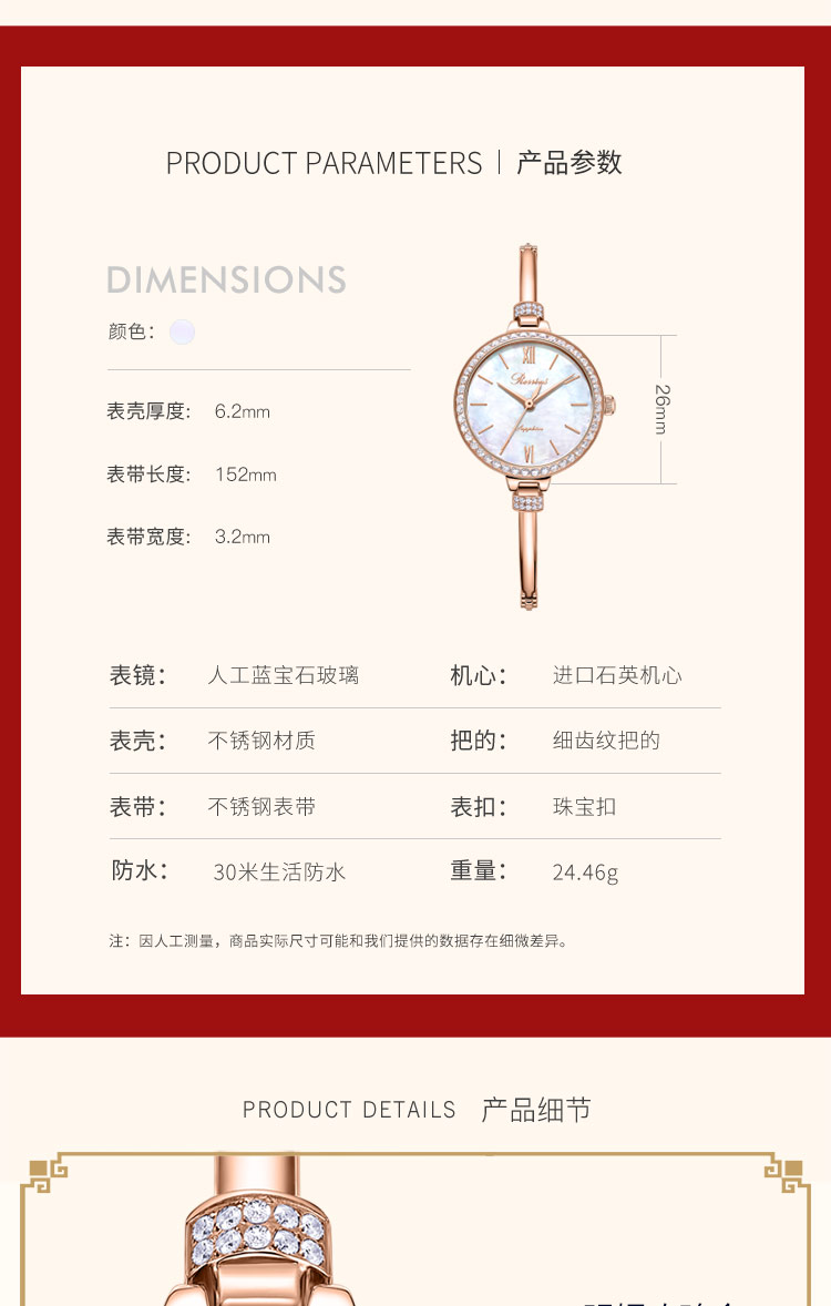 商品卖点: 轻奢真钻气质方表